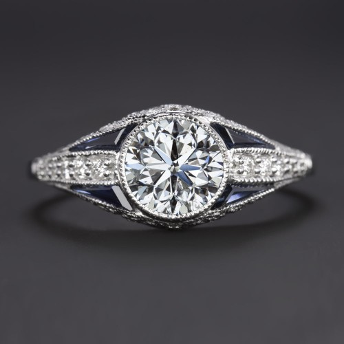 0.91ct DIAMOND SAPPHIRE ENGAGEMENT RING CERTIFIED VINTAGE STYLE ART DECO ROUND