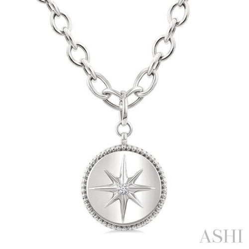 1/10 Ctw Bold Star Engraved Puffed Heart Round Cut Diamond Pendant With Chain in Sterling Silver