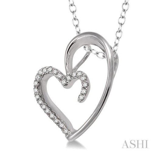 1/10 Ctw Round Cut Diamond Heart Shape Pendant in Sterling Silver with Chain