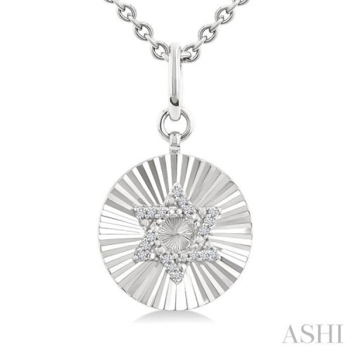 1/10 Ctw Round Fluted Medallion Round Cut Diamond Star of David Pendant With Chain in Sterling Silver