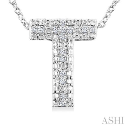 1/20 Ctw Bubble Accent Initial ‘T’ Round Cut Diamond Fashion Pendant With Chain in Sterling Silver