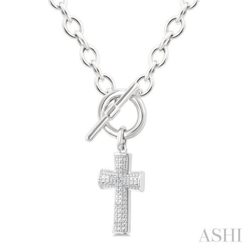1/20 Ctw Cross Toggle Round Cut Diamond Fashion Necklace in Sterling Silver