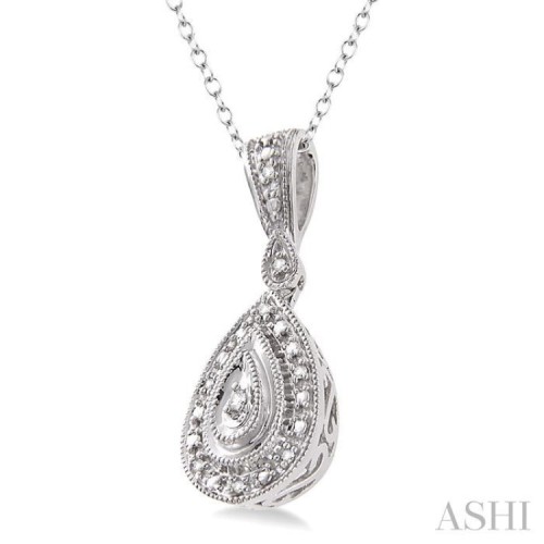 1/20 Ctw Pear Shape Round Cut Diamond Pendant in Sterling Silver with Chain