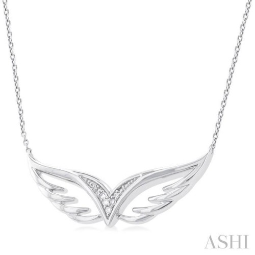 1/50 Ctw Angel Wing Round Cut Diamond Fashion Pendant With Chain in Sterling Silver