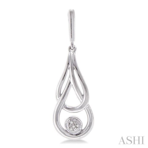 These tear drop designed diamond earrings are an exquisite gift for someone you love. Fashioned in glinting sterling silver, these interlocked tear drop designed earrings are adorned with 8 gorgeous inset round cut diamonds, elegantly prong set. The treats close with ear nuts. The total diamond weight is 1/50 Ctw.