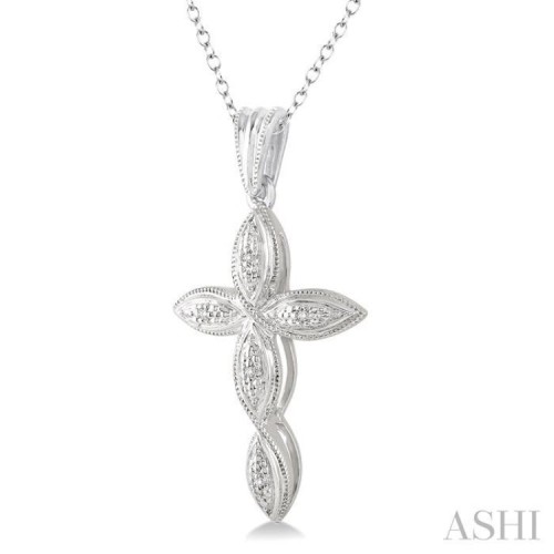 Make a statement of your faith in God with this diamond cross pendant. Fashioned in warm sterling silver, this traditional cross features dazzling 5 prong set round cut diamond accents, one at the center and four corners add a hint of subtle sparkle. This style hangs from a beautiful Cable Chain 1.00 MM in 18 Inches with Spring Lock & Extenders at 16″ & 17″. The total diamond weight is 1/50 Ctw.