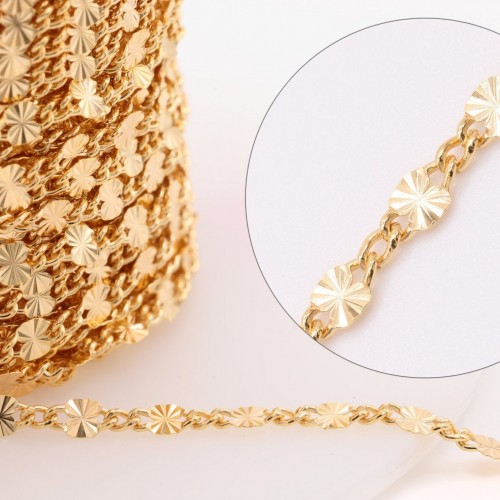 4mm Dapped Oval Chain, 14K Solid Gold, Flat Oval Chain Uncut per Inch, Jewelry Making Chain