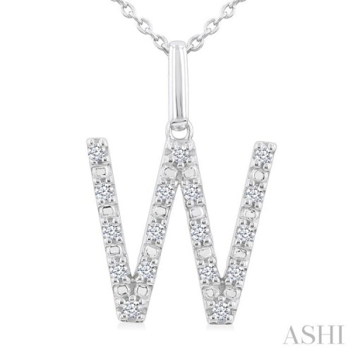 1/8 Ctw Initial ‘W’ Round Cut Diamond Fashion Pendant With Chain in Sterling Silver