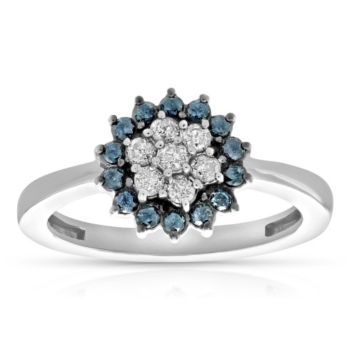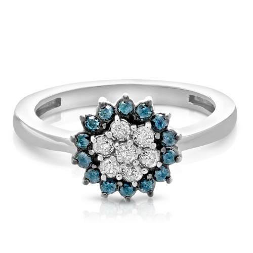 1/2 cttw Blue and White Diamond Flower Ring in 10K White Gold 7
