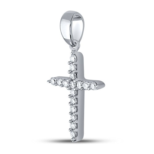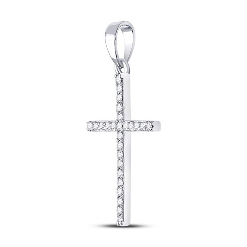 10K White Gold 10Kt White Gold Womens Round Diamond Religious Cross Pendant 1/10 Cttw 10K