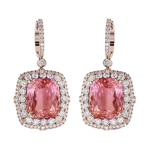 Stone Specifications : There is one pink tourmaline approx. 5.50 carats (Approx. Size 12.9 x 9.6 mm) & 0.61 carat round smaller diamonds on the side in each earring. Natural earth-mined stones.