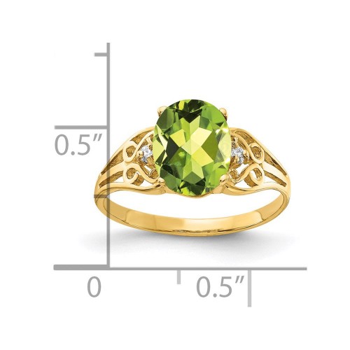 14k 9x Oval Peridot AAA Diamond ring 7mm