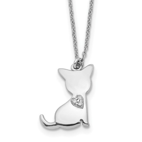 14k and White Rhodium Diamond-cut Cats Sitting on Bench Pendant Necklace 18in