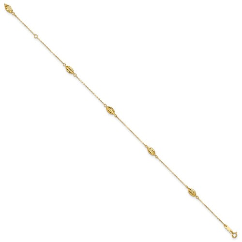 14k Diamond-cut Rice Puff Beads 4-Station Plus Extender – Total Anklet 9in