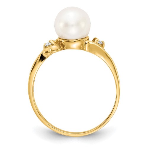 14k Gold FW Cultured Pearl AA Diamond ring 7mm