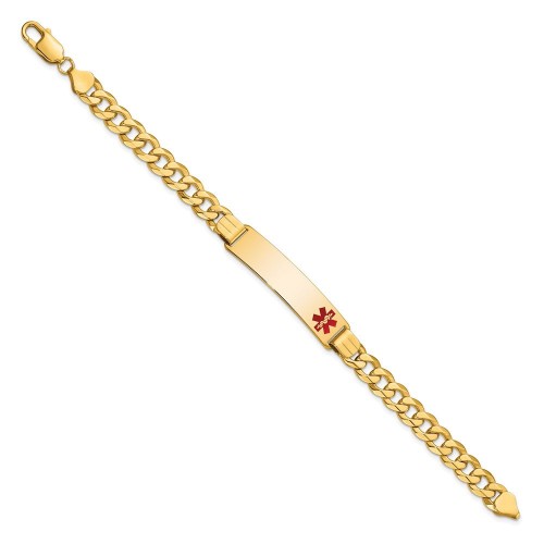 14K Medical Solid Chain/Solid Plate 40x Off-Center Red Enamel Flat Curb Link ID Bracelet 8in 10mm