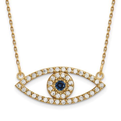 14k Polished 1/10 carat Diamond Halo Evil Eye Necklace