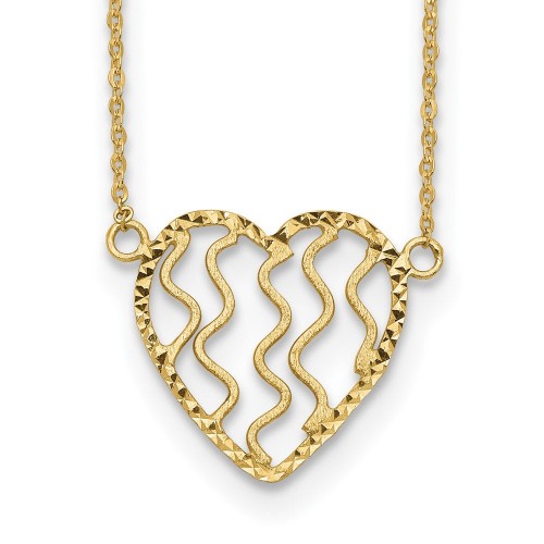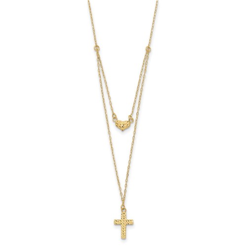 14k Polished 2-Strand Diamond-cut Cross and Heart Necklace Plus Extender 16in