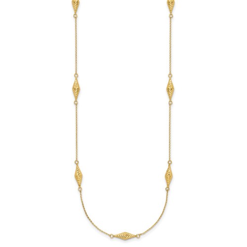 14k Polished and Diamond-cut Fancy Beaded Necklace 18in