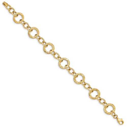 14k Polished and Textured Fancy Link Bracelet 7in