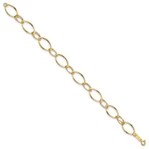 14K Polished and Textured Fancy Oval Link Bracelet 7in