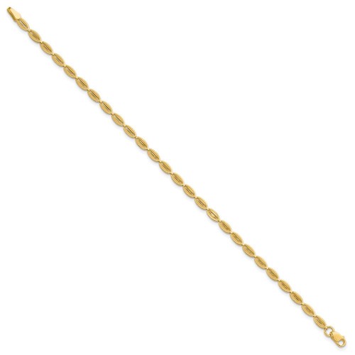 14K Polished and Textured Fancy Oval Link Bracelet 7in