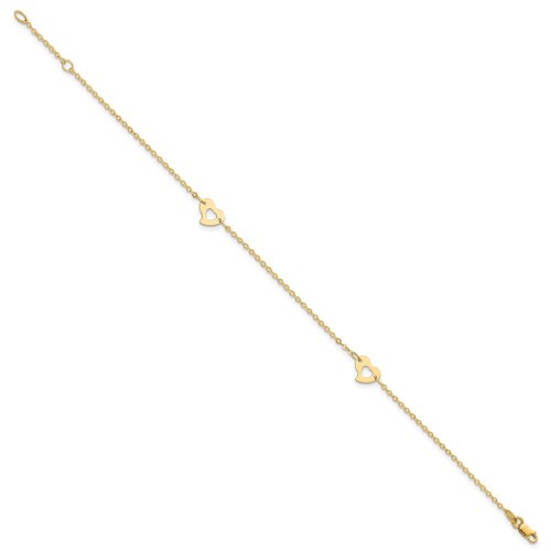 14k Polished Cut-out Heart Anklet Plus Extender 10in