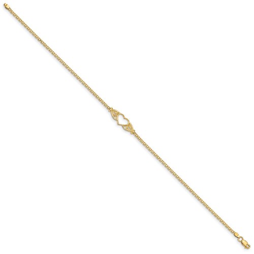 14k Polished Open Heart with Filigree and Bismark Chain Anklet 10in