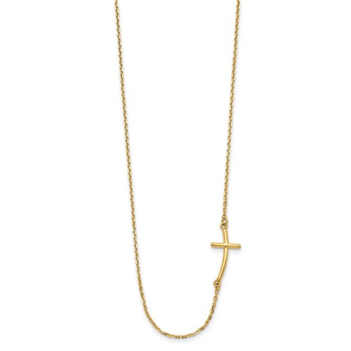 14k Polished Small Sideways Curved Cross Necklace 19in