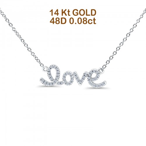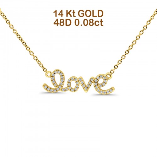 14K Rose Gold 0.08ct Round Shape Love Script Heart Diamond Pendant Chain Necklace 18″ Long