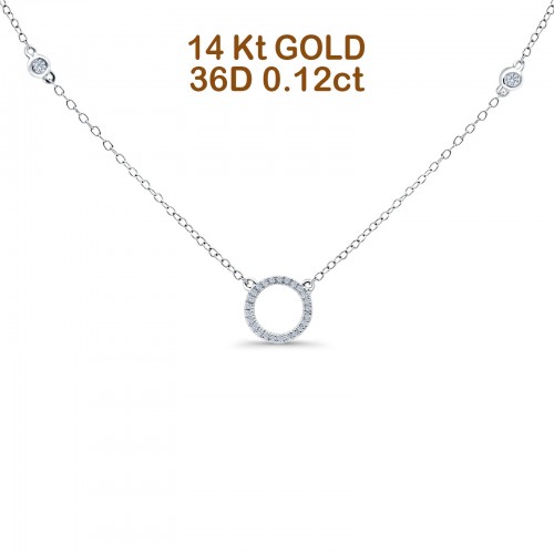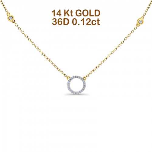 14K Rose Gold 0.12ct Round Shape Diamond Trendy Circle Pendant Chain Necklace 18″ Long