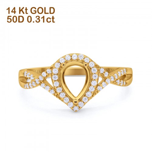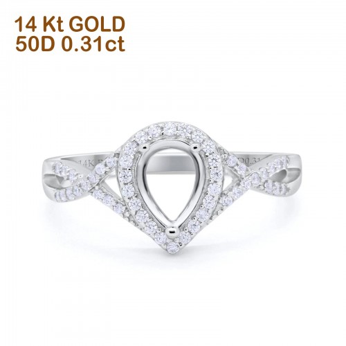 14K Rose Gold 0.31ct Teardrop Pear Infinity Round 11mm G SI Semi Mount Diamond Engagement Wedding Ring Size 6.5