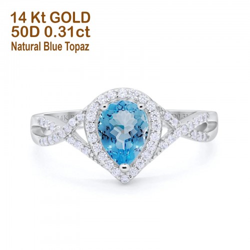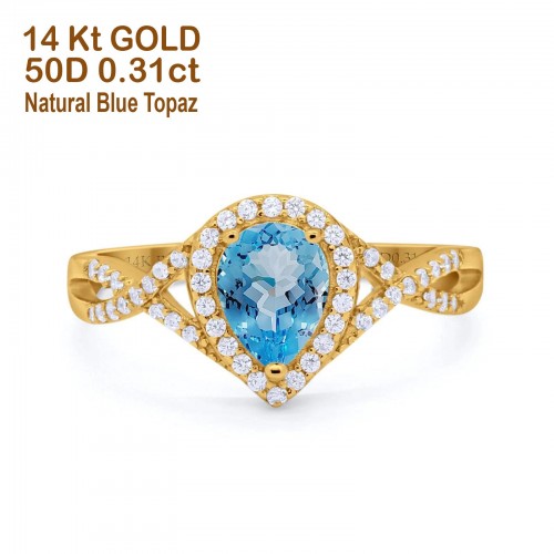 14K Rose Gold 1.56ct Teardrop Pear Infinity 11mm G SI Natural Blue Topaz Diamond Engagement Wedding Ring Size 6.5