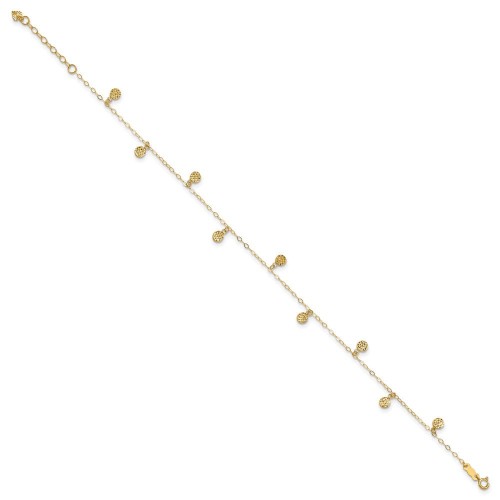 14k Textured and Polished Hollow Dangle Circles Anklet Plus Heart Dangle Extender 10in