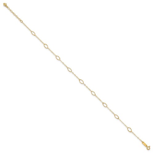 14k Textured Oval Shapes Anklet Plus Heart Dangle Extender 10in