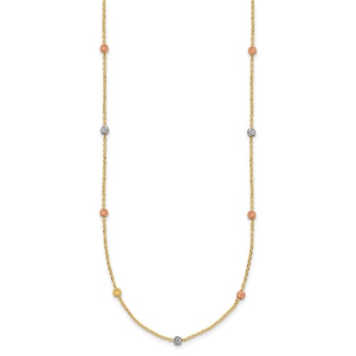 14k Tri-color Polished Diamond-cut Beads Station Necklace 18in