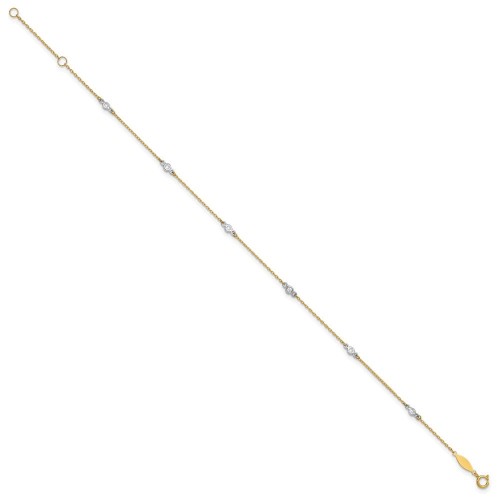 14k Two-tone Bezel-set CZ 6-Station Plus Extender – Total Anklet 9in