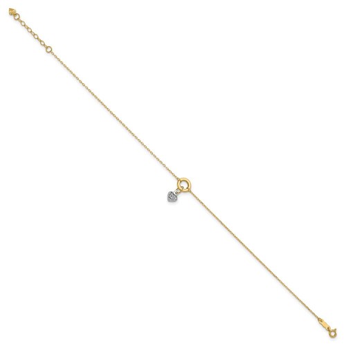 14K Two-tone Circle with Diamond-cut Puffed Heart Dangle Plus Extender – Total Anklet 9in