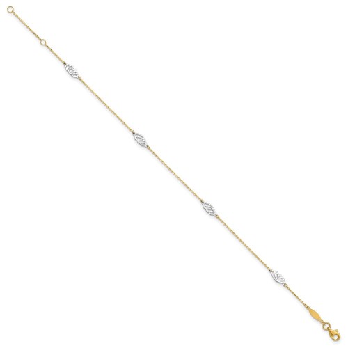 14K Two-Tone Diamond-cut Polished Leaf 4-Station Anklet Plus Extender 10in