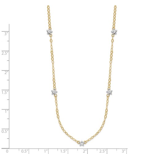 14K Two-tone Diamond-cut Stars with Oval Chain Station Necklace Plus Extender 16in