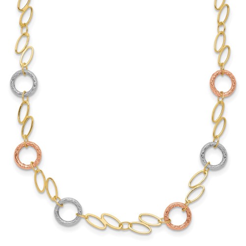 14K Two Tone Polished Diamond-cut Puffed Heart and Bead Pendant Necklace 18in