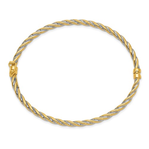 14k Two-Tone Polished Hinged Bangle Oval Bracelet 3.00mm