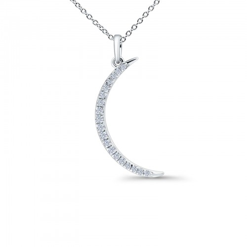 14K White Gold 0.15ct Round Shape Diamond Crescent Moon Pendant Chain Necklace 18″ Long
