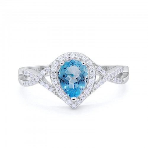 14K White Gold 1.56ct Teardrop Pear Infinity 11mm G SI Natural Blue Topaz Diamond Engagement Wedding Ring Size 6.5