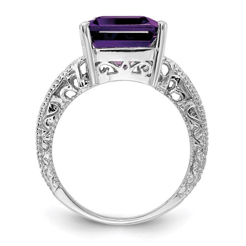 14k White Gold 12x Emerald Cut Amethyst A Diamond ring 10mm