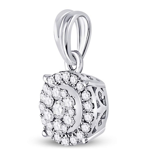 14K White Gold 14Kt White Gold Womens Round Diamond Halo Cluster Pendant 1/4 Cttw 14K