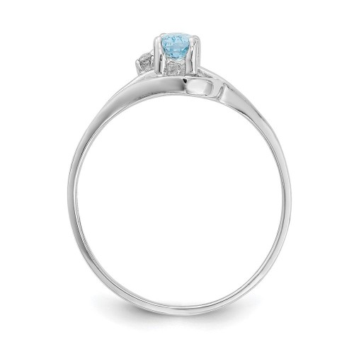 14k White Gold 5x Oval Blue Topaz A Diamond ring 3mm