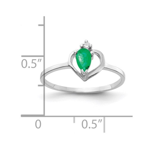 14k White Gold 5x Pear Emerald AA Diamond ring 3mm