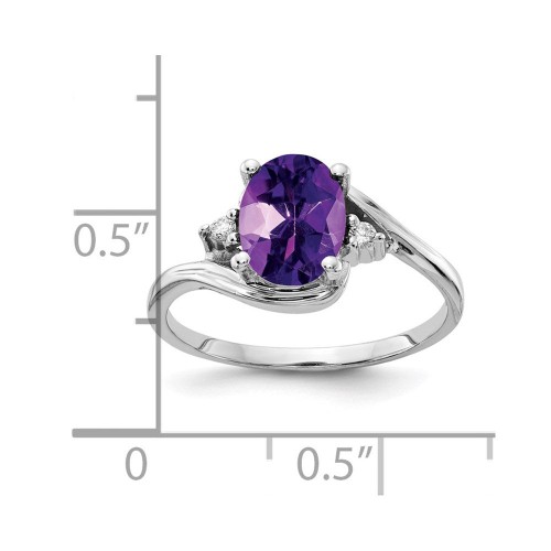 14k White Gold 8x Oval Amethyst A Diamond ring 6mm