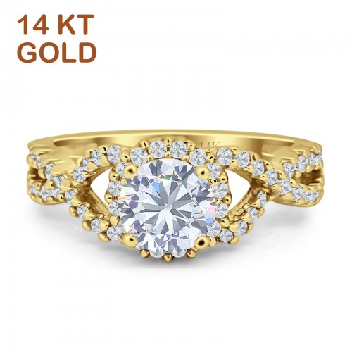 Round Halo Split Shank Twisted Ring